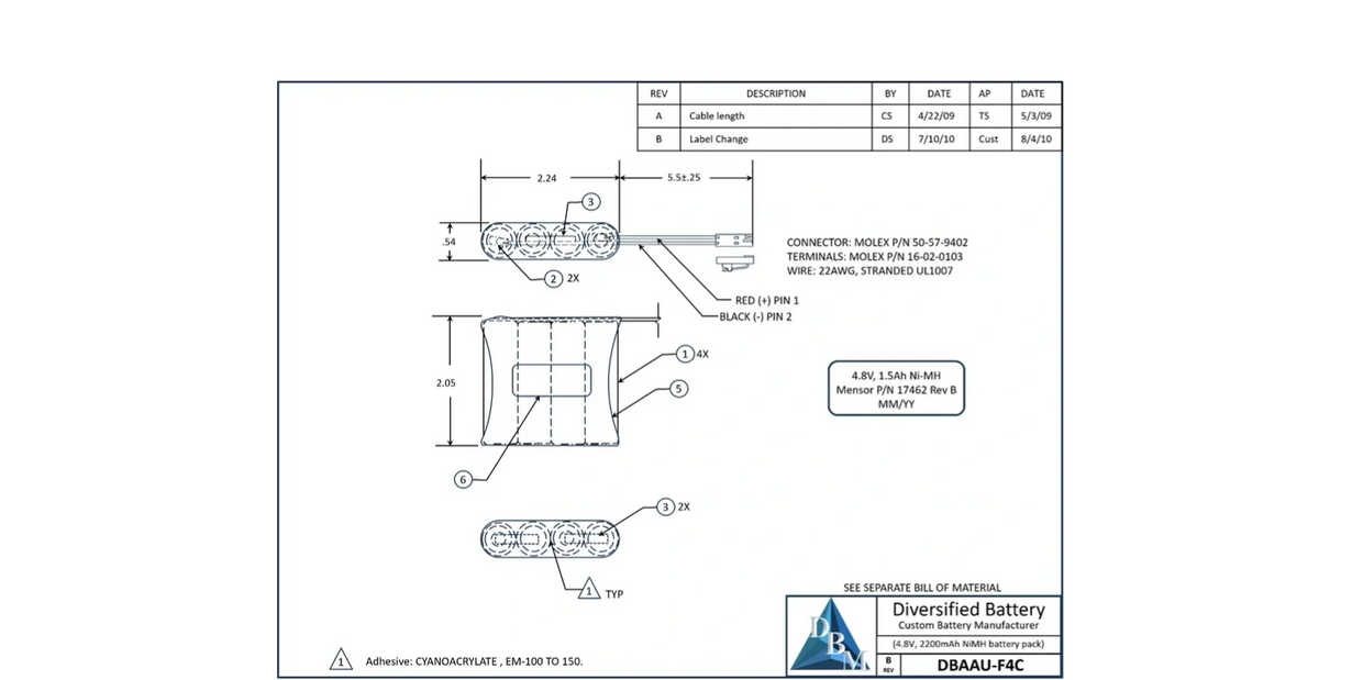 As part of our OEM and engineering services Diversified Battery Manufacturing will provide our customers with a technical drawing and bill-of-materials for their project. We also offer this as a separate service if you need a drawing for your battery pack.