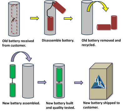 After the non-working batteries and parts are removed from the housing, or battery pack, all recyclable parts are disposed of in accordance with all state, local, and federal regulations, as well as Diversified Battery Manufacturing's own environmentally conscience values.