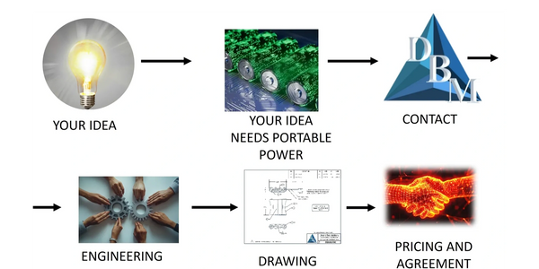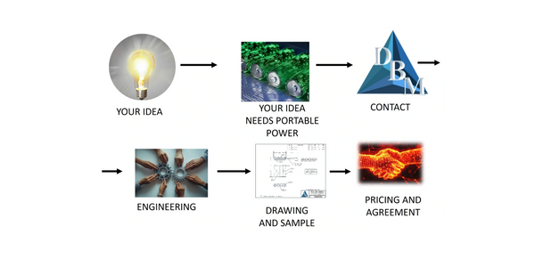 We start with your idea and review and analyze its requirements. We then look at your needs, timeline and budget. Next, we engineer a battery that meets all those requirements and create a drawing and prototype for your review. Once we have a battery that is to your satisfaction, we come to an agreement on moving forward.