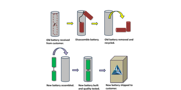 Battery packs can be remanufactured, sometimes called rebuilding. This is a process where an existing battery pack is disassembled and the old, spent cells are removed and replaced with new ones. The pack is then reassembled. REMANUFACTURING REQUIRES THE CUSTOMER TO SEND THE BATTERY TO DIVERSIFIED BATTERY - REMANUFACTURING REBUILD DEPARTMENT.